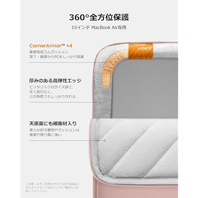 商品名:《新品未開封》tomtoc 360°保護 パソコンケース 15インチ MacBook Air M4 2025 M3/M2 2024-2023 / Dell XPS 15 Plus対応 全方位耐衝撃 ノートPCケース スリーブ ラップトップインナーバッグ 軽量 撥水加工 ピンク