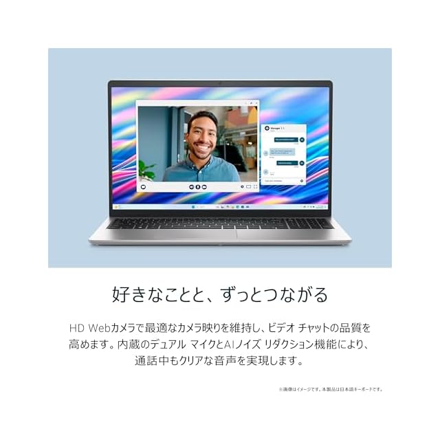 【好きなことと、ずっとつながる】内蔵のHD Webカメラで最適なカメラ映りを維持し、ビデオ チャットの品質を高めます。内蔵のシングル マイクにより、通話中もクリアな音声を実現します。 Dell ComfortViewソフトウェアが有害なブルーライトの発生を抑え、画面を長時間見続けても目の負担を軽減するため、好きなことに没頭できます。