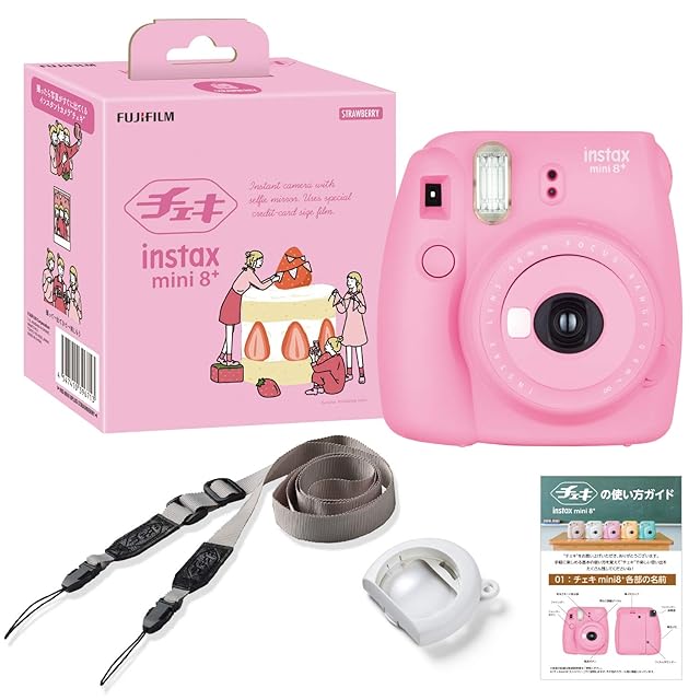 《新品未開封》富士フイルム(FUJIFILM) インスタントカメラ チェキ instax mini8プラス 接写レンズ・純正ショルダーストラップ付き ストロベリー 116mm×118mm×68mm INS MINI 8PLUS STRAWBERRY