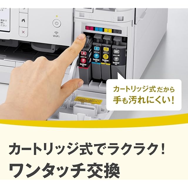 A4文書印刷時(1枚あたり)のインクコスト:(カラー)約9.9円(税込)・(モノクロ)約3.0円(税込)、対応インク:LC411BK/LC411C/LC411M/LC411Y