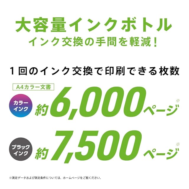 ケタ違いの低印刷コスト&大容量 A4カラー文書が1ページあたり約 1.0円(税込)、A4モノクロ文書で約 0.4円(税込)(注1)というケタ違いの低印刷コストを実現。さらに大容量インクなので気軽にジャンジャン印刷できます。