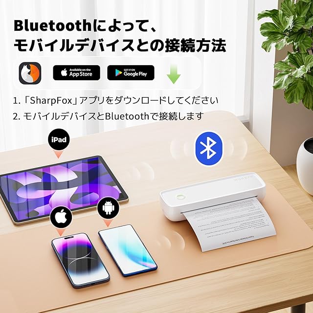 重要なお知らせ:ポータブルプリンターはWindowsおよびMacBookのARMシステムではご利用いただけません。ご了承ください。 プリンターは印刷ファイルのすべての内容を含めて印刷します。空白部分も含まれます。お客様が空白部分を印刷しないようにしたい場合は、事前にファイルをトリミングしてから印刷する必要があります。 スマホからBluetoothを利用するため、必ず「Sharpfox」というアプリを利用してください。