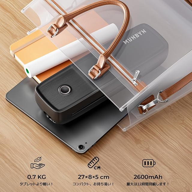 《新品未開封》MUNBYN モバイルプリンター A4 家庭用およびオフィス用のA4ポータブルプリンター 勉強/出張/スマホ/小型 Bluetooth接続対応 Android iOS ノートPC Mac 互換性あり ITP04 サーマル 内蔵2600mAHの大容量バッテリー JCT登録済 黒