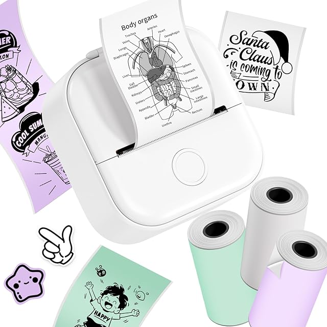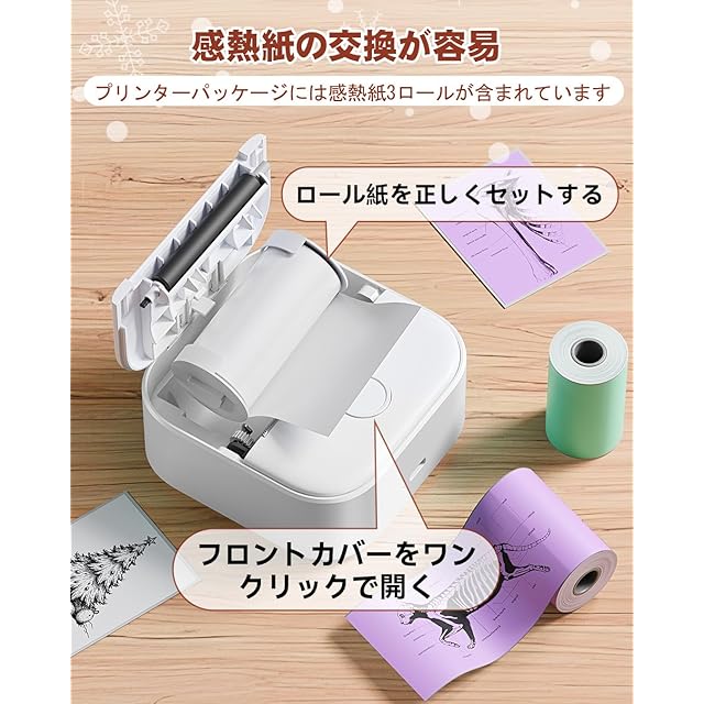 「ポケットプリンター 無限の創造性」Phomemo T02 ステッカーメーカー機 ミニプリンター iphone用 3ロール紙(白/紫/緑)付きで、すぐに無限の印刷創造を楽しめます。あらゆる印刷ニーズに低コストでお応えします