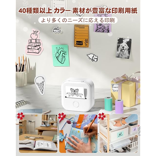 「T02ミニフォトプリンターはiOSとAndroidに対応しており、写真、学習メモ、ToDoリスト、DIYシール、収納ラベル、メモなどを印刷できます。友達、家族、子供へのプレゼントとして、実用的で楽しく使えます