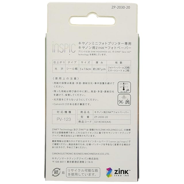 キヤノン用ZINKフォトペーパー