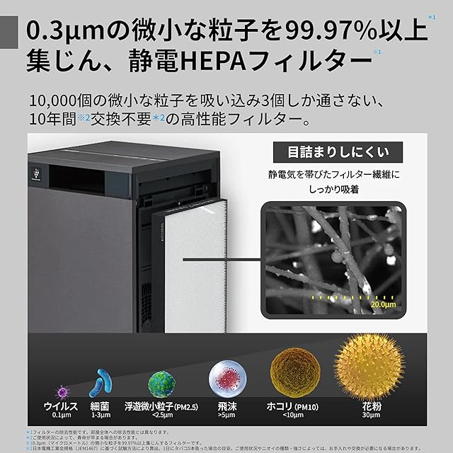 浄化方式:「プラズマクラスター25000」空中浄化&フィルター浄化
