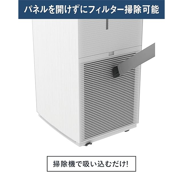 お手入れ簡単(パネルを開けずにフィルター掃除)、移動もラクラク(キャスター付き)