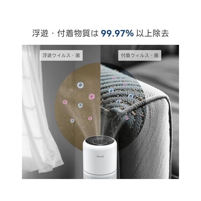 【3層ろ過・2層除菌で、空気の悩みから解放! 】菌・ホコリ・カビ・アレルゲン・PM2.5・たばこ・ペットの臭いや抜け毛をしっかり除去する、高性能の一体型フィルターを採用しています。0.1μmの微粒子を99.97%まで、除菌率は99.99%まで取り除くことが可能です。これにより、くしゃみや鼻水、鼻のかゆみといった症状を和らげ、より快適な生活をお届けします。