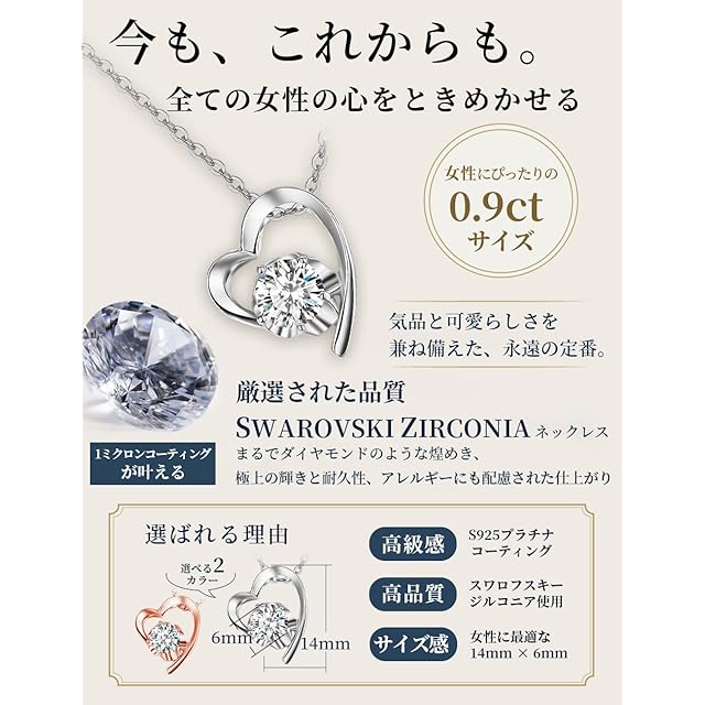 輝きと華やかさを兼ね備えた、特別なギフトセット。 ダイヤモンドのように美しい光を放つスワロフスキー ジルコニアをあしらった上品なハート型ネックレス レディースと、色鮮やかなプリザーブドフラワーを組み合わせました。 ネックレスは925スターリングシルバー製で、変色しにくく長くご愛用いただけます。シンプルで大人可愛いデザインは、普段使いはもちろん、デートやパーティーなど特別なシーンでも胸元を華やかに演出します。 プリザーブドフラワーは、本物の花を特殊加工することで、生花のような美しさを長期間楽しめます。上品で華やかな花と輝くネックレスの組み合わせは、大切な人への心のこもったプレゼントとして喜ばれること間違いなし。 誕生日、記念日、母の日、クリスマス、バレンタインデー、ホワイトデーなど、あらゆるギフトシーンにぴったり。専用ボックスにセットされているため、ラッピング不要でそのまま贈れます。さらに【90日間の品質】付きで、安心してお選びいただけます。 大切な人に笑顔を届ける、特別な【ネックレス レディース】と【プリザーブドフラワー】のギフトセット。あなたの想いを、美しい輝きと花の彩りで伝えてみませんか?
