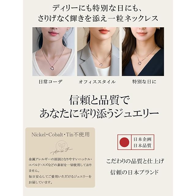 【幅広いシーンに対応】 シンプルで大人可愛いネックレス レディースは、オフィス、デート、女子会、パーティーなど様々なシーンで大活躍。スワロフスキー ジルコニアの輝きが胸元を華やかにし、贈り物やプレゼントにも最適です。