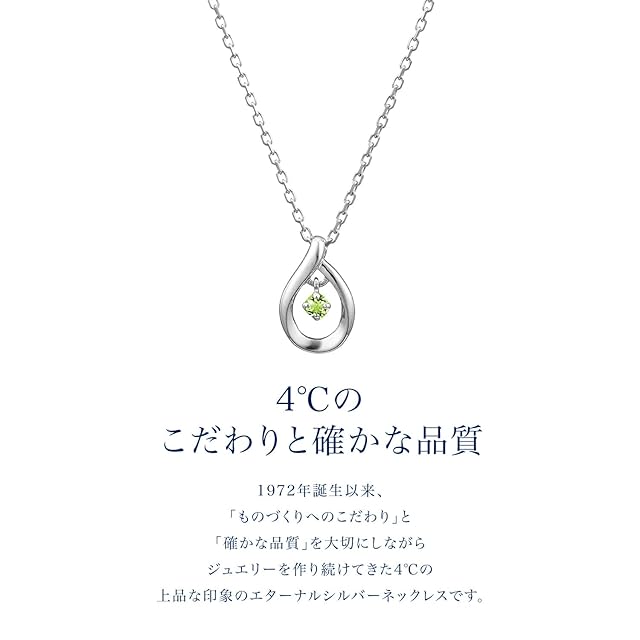 《新品未開封》4℃[ヨンドシー] 公式 8月誕生石 シルバー ネックレス ジュエリーケース付き しずく ペリドット 華やか 記念日 プレゼント レディース 11182-412-1819-00-00