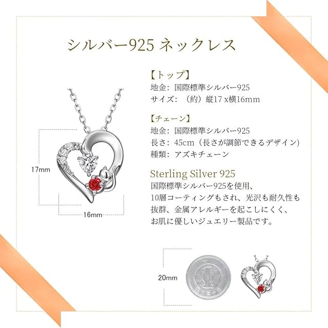 【材質】国際標準シルバー925/ハートカットの石: 最高級スワロフスキージルコニア/ 7月誕生石:天然ルビー。クリスマスプレゼントや誕生日のプレゼント、記念日、母の日ギフトなど大切な方への贈り物に是非ご利用ください。