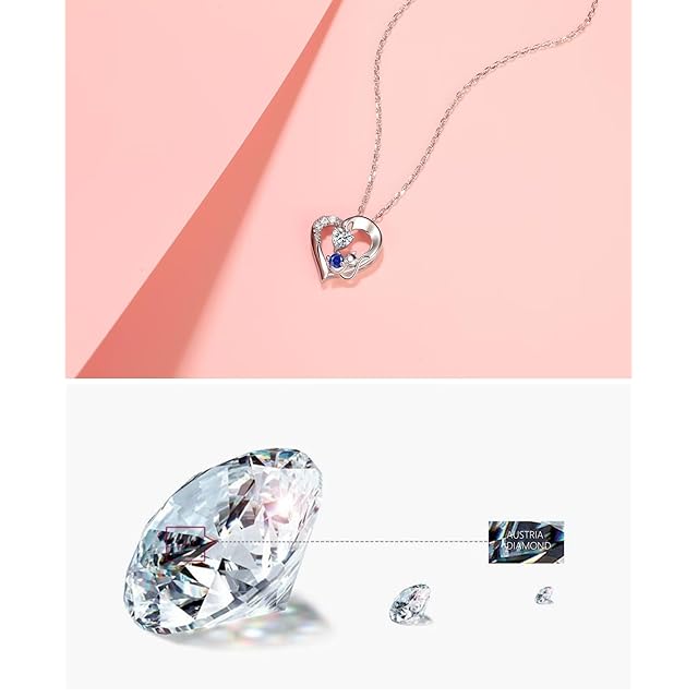 【材質】国際標準シルバー925/ハートカットの石: 最高級スワロフスキージルコニア/ 9月誕生石:天然サファイア。クリスマスプレゼントや誕生日のプレゼント、記念日、母の日ギフトなど大切な方への贈り物に是非ご利用ください。