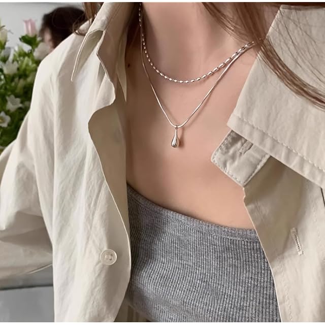【優れた二重デザイン】この二重ネックレスは、エレガントでミステリアスな魅力を持つアクセサリーです。クラシックなスネークチェーンとエレガントなラウンドチェーンを融合させたデザインのネックレスに、繊細なしずく型のペンダントをあしらい、ヴィンテージ感とエレガントさをプラスしました。