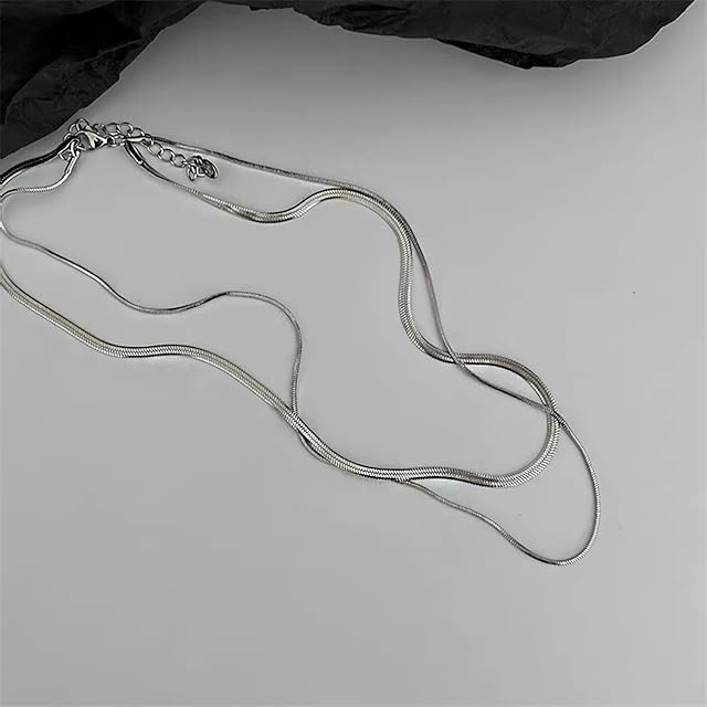 商品名:《新品未開封》[Mesaro] ステンレス 二重 ネックレス シンプル ダブルチェーン カジュアル スネークチェーン シルバー おしゃれ レディース 女性 ギフト プレゼント デイリー ジュエリー