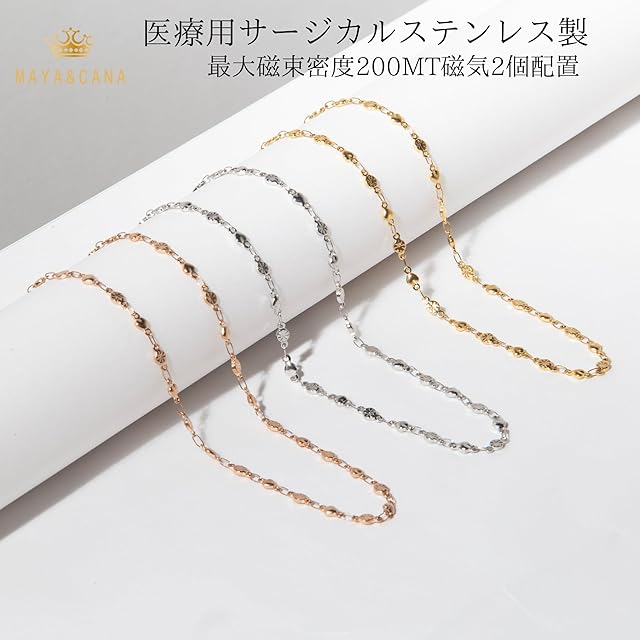 商品名:《新品未開封》[MAYA&CANA] 磁気ネックレス レデイース 御洒落 磁気2個 200mt サージカル ステンレス ネックレス チェーン 45cm ギフトボックス付き (ゴールド)