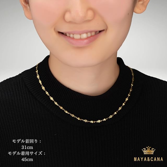《新品未開封》[MAYA&CANA] 磁気ネックレス レデイース 御洒落 磁気2個 200mt サージカル ステンレス ネックレス チェーン 45cm ギフトボックス付き (ゴールド)