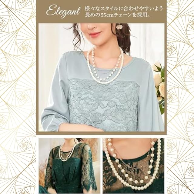 商品名:《新品未開封》[RAKUMIKA] [イメージコンサルタント監修] パール ネックレス レディース 長め [2色x3連x55cm] アクセサリー おしゃれ 冠婚葬祭 結婚式 パーティー 母の日 卒業式 入学式 披露宴 (ゴールド)