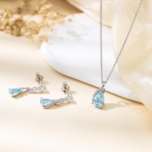 《新品未開封》[FH.bird] アクアマリン ネックレス レディース ピアス セット人気 ブルー「ラブストーン」シルバー925 金属アレルギー対応 錆びない ネックレス 水色 3月誕生石 錆びない 大粒です 誕生日プレゼント女性 人気 20代 クリスマスプレゼント