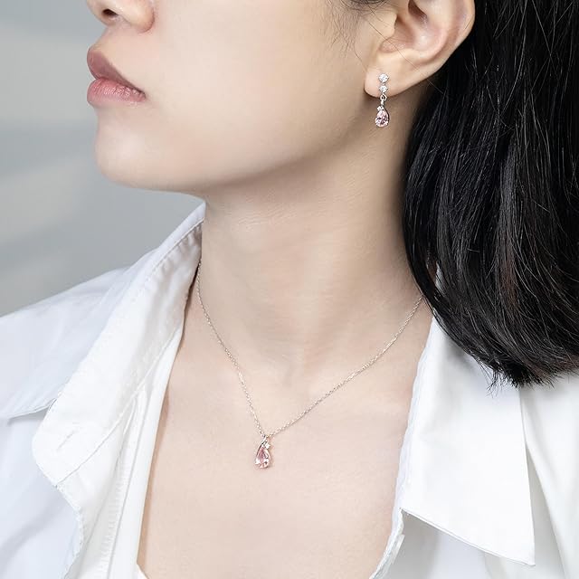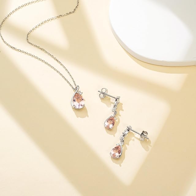 《新品未開封》[FH.bird] モルガナイト ピアス ネックレス セット レディース 人気「ラブストーン」シルバー925 金属アレルギー対応ネックレス 誕生石 ペンダント シンプル パーティー 誕生日 クリスマスプレゼント 女性 人気 20代