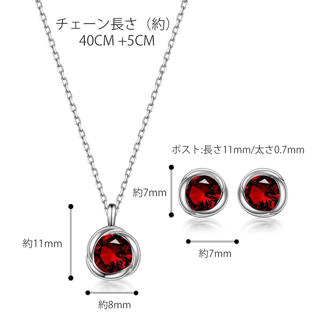 商品名:《新品未開封》[Free bird] ネックレス レディース ピアス セット 1月 誕生石 ピアスガーネットネックレス 925 シルバー ペンダント アクセサリーセット 女性 ギフト母親 誕生日 クリスマスプレゼント 女性