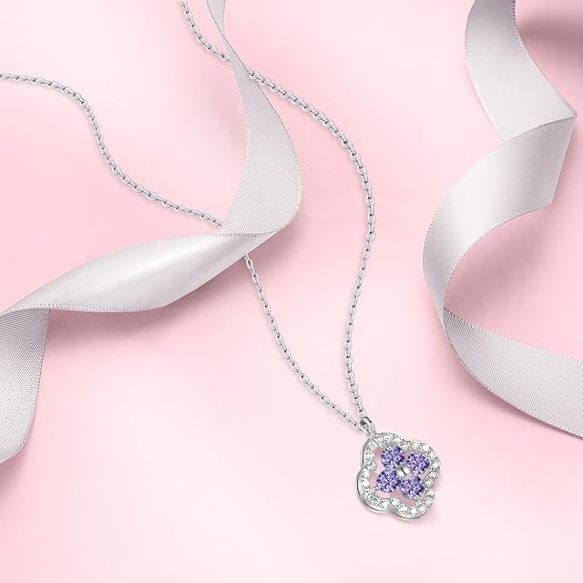 《新品未開封》[Free bird] アメジストネックレス レデイース 4つ葉クローバー ネックレス クリスマス 誕生石「幸運の象徴」パープルペンダントシルバー925 金属アレルギー アクセサリー クリスマスプレゼント 女性 Christmas