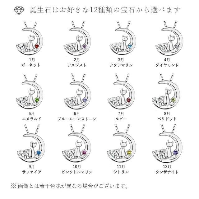 商品名:《新品未開封》[HAH] ネックレス レディース 誕生石 ネコ 月 願望実現 モチーフ ペンダント プレゼント (4月ダイヤモンド)