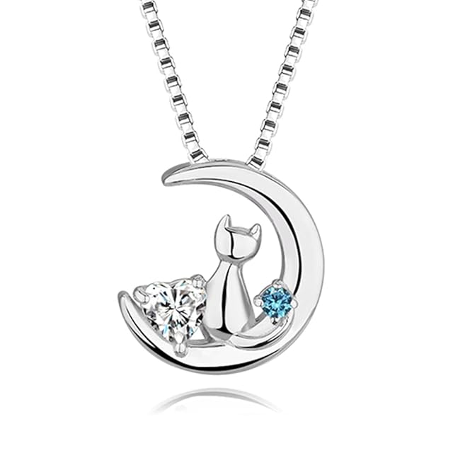 商品名:《新品未開封》[HAH] ネックレス レディース 誕生石 ネコ 月 願望実現 モチーフ ペンダント プレゼント (3月アクアマリン)