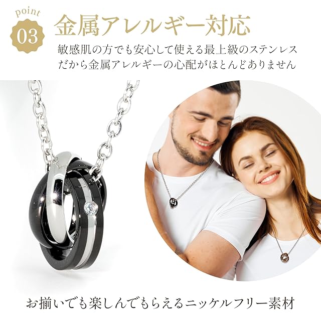 商品名:《新品未開封》[Napist] ネックレス メンズ 3連リング 316L サージカルステンレス [ 金属アレルギー対応 ] 錆びない リングネックレス NPN032 ブラック