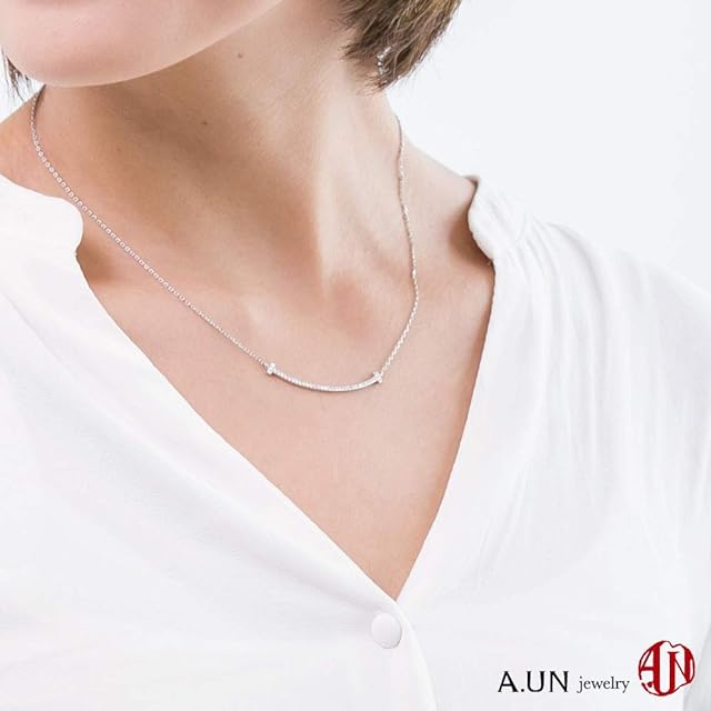 【商品詳細】ネックレス:スターリングシルバー925製 A.UN jewelryロゴ入り 高級ジルコニア30石使用 合計0.15ct 首回り約38cm(アジャスターで+5cm可能)ロングネックレス トップ長さ約40mm 幅1.5mm 製品重量約2g。カラーはゴールド、ピンクゴールド、プラチナからお選びいただけます。
