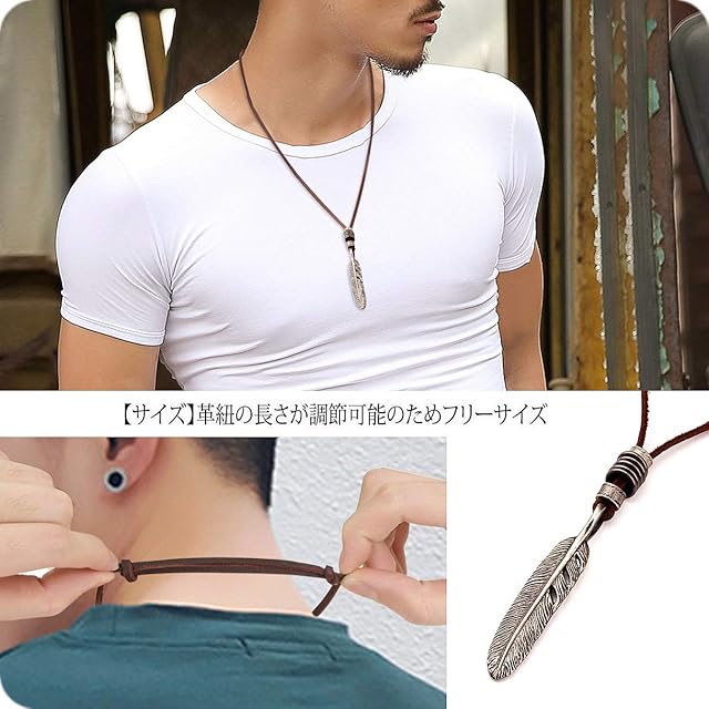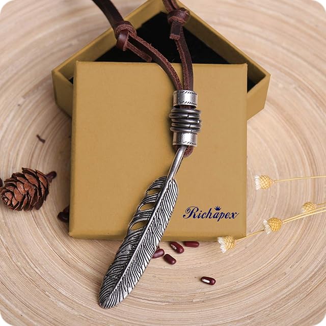 《新品未開封》[Richapex] 本革 ネックレス イーグル 鷲 羽根 フェザーネックレス 羽根 翼ペンダント 長めの革ひも アクセサリー 本皮 ブロンズ メンズ アクセサリー レザー 父の日