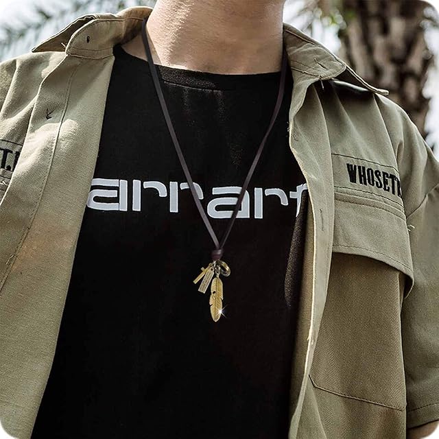 レザー紐で長さの調節が出来るので、服装に合わせて長さを変えられます。