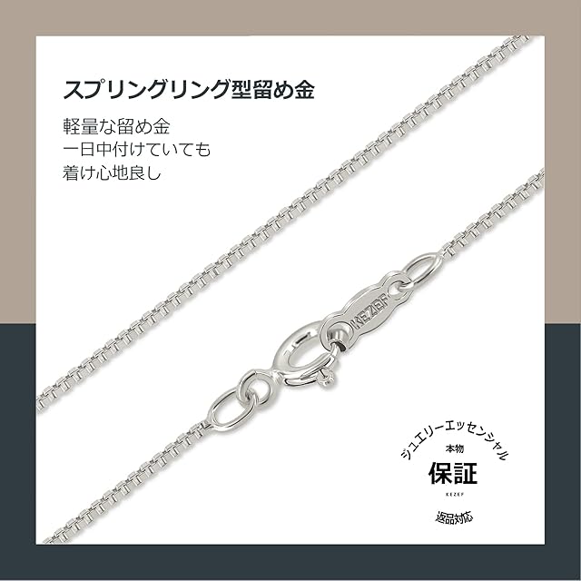 商品名:《新品未開封》[KEZEF] ケゼフ スターリングシルバーネックレス ボックスチェーン - ネックレス チェーンのみ メンズ & レディース 1mm 幅 イタリア製 変色防止 (サイズ 22" / 56cm)