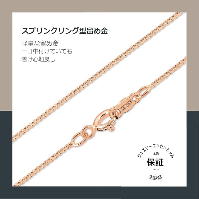 商品名:《新品未開封》[KEZEF] ケゼフ ローズゴールドメッキ スターリングシルバーネックレス - ボックスチェーン 1mm 幅 - 心地よいフィット感のクラシックデザイン - サイズ 30cm-100m イタリア製