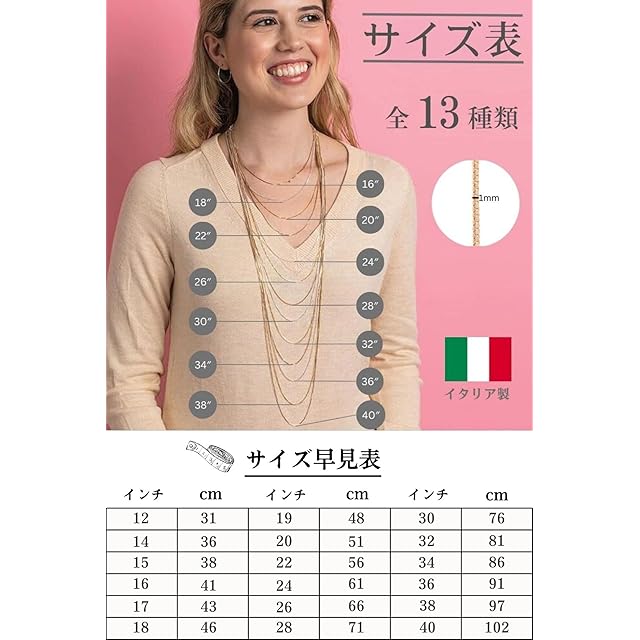 イタリア製 : このプレミアム品質のローズゴールドボックスチェーンネックレスはヨーロッパから輸入され、何年着けても綺麗に輝きを保つように独自の酸化防止剤で加工されております