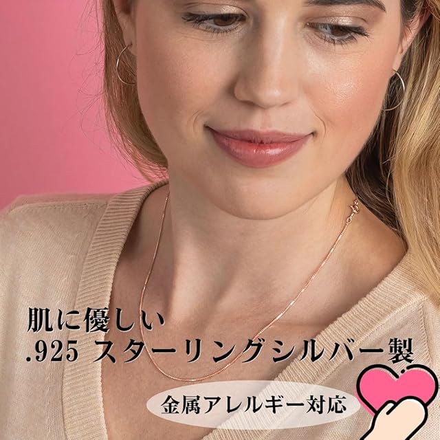 イタリア製 : このプレミアム品質のローズゴールドボックスチェーンネックレスはヨーロッパから輸入され、何年着けても綺麗に輝きを保つように独自の酸化防止剤で加工されております