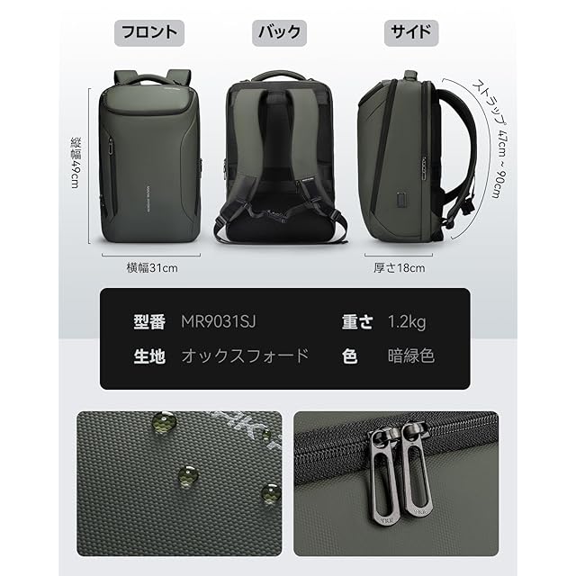 商品名:《新品未開封》[MARK RYDEN] [マークライデン] バックパック 防水ビジネスリュック メンズ用 30L大容量 盗難防止ラップトップバッグ17インチパソコン対応 グリーン