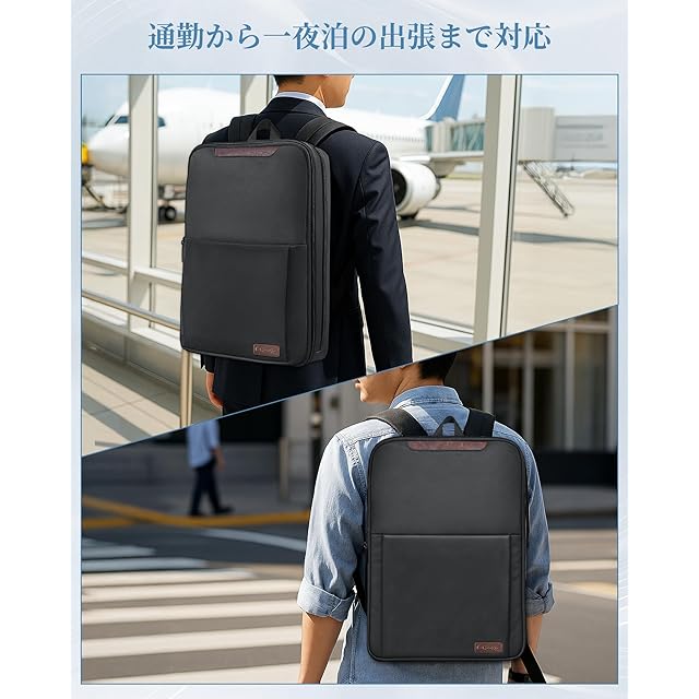 【極薄で20Lまで拡張】ビジネスリュックはわずか7cmのスリムさと800gの軽さで、満員電車でも快適に持ち運べる設計。ファスナーを開けば容量は10Lから20Lに早変わり。普段使いの通勤用 リュックとしてはもちろん、2日1泊の出張にもぴったり。20Lの容量で機内持ち込み可能です。