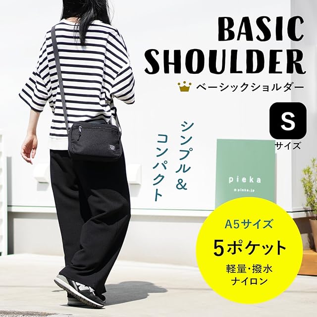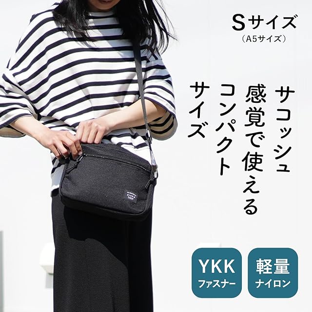 《新品未開封》[pieka] ショルダーバッグ メンズ 小さめ 軽量 斜めがけ 5ポケット(Sサイズ/ブラック)