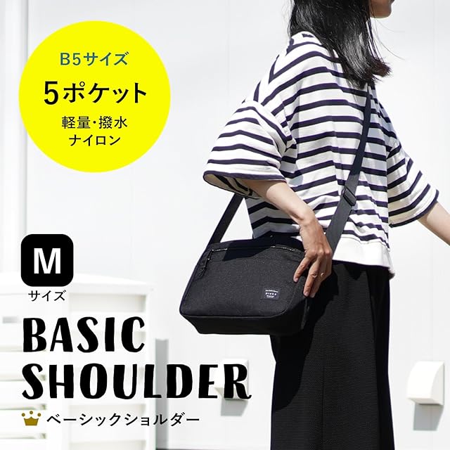 《新品未開封》[pieka] ショルダーバッグ メンズ 軽量 斜めがけ 5ポケット(Mサイズ/ブラック)