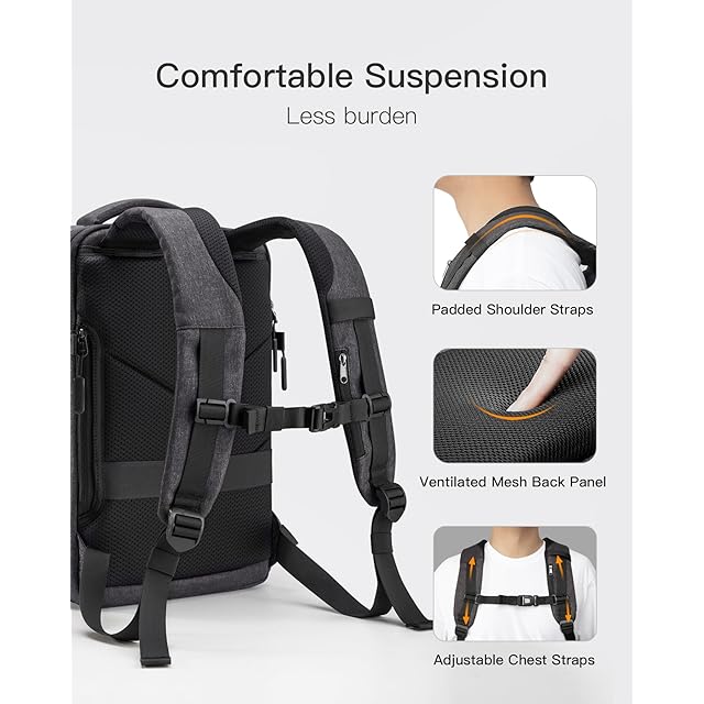 【快適で丈夫】背面パネルのエアメッシュが空気の流れを保ち、通気性と快適性を実現します。 調節可能なチェストストラップは、肩の圧力を和らげ、パックの安定性を高めます。 ポリエステル生地で作られており、防滴性と耐摩耗性があり、出張、通勤、ハイキングに最適です。 荷物のトラベルバッグ、ノートパソコンで荷物を運ぶ、出張用バックパックとしてお使いいただけます。
