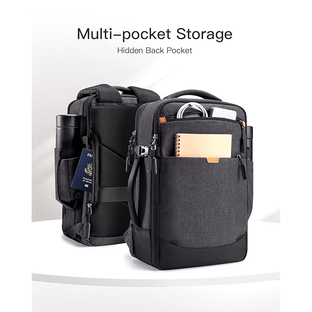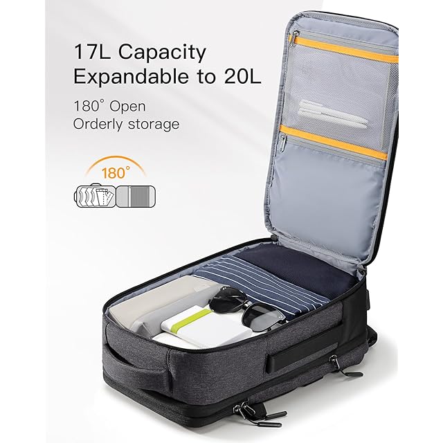 【拡張可能容量】メインコンパートメントは180度開き、容量を17Lから20L(40x25x20cm)に拡張でき、20インチのスーツケースと同等です。 旅行中に持ち物を簡単かつ整然と整理するのに役立ちます。 大きな旅行用バックパック、荷物用トラベルバッグ、ビジネスバックパック、バックパックスーツケースとして使用できます。