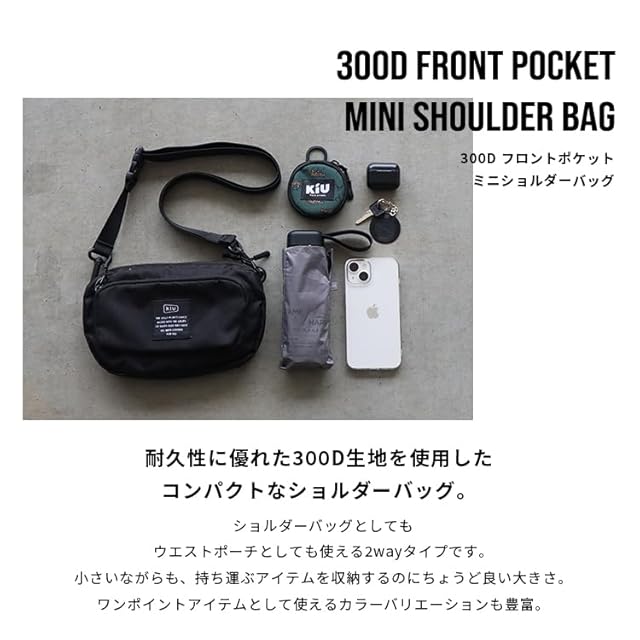 商品名:《新品未開封》KiU キウ 300D フロントポケットミニショルダーバッグ 300D FRONT POCKET MINI SHOULDER BAG ショルダー バッグ ポーチ 肩掛け ミニバッグ ミニポーチ 男女兼用 ウエストポーチ おしゃれ かわいい 2WAY 小さめ 撥水 背面メッシュ ポケット キーカラビナ UMAライラック K156-524
