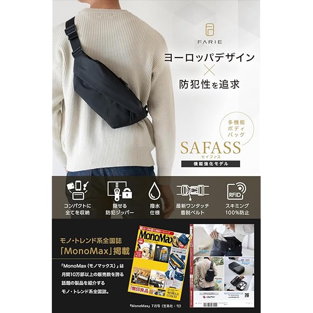 【モノ系No.1雑誌「MonoMax」に掲載」】:モノ系No.1雑誌のMonoMax 7月号に当製品のボディバッグブランド FARIEが掲載されました。