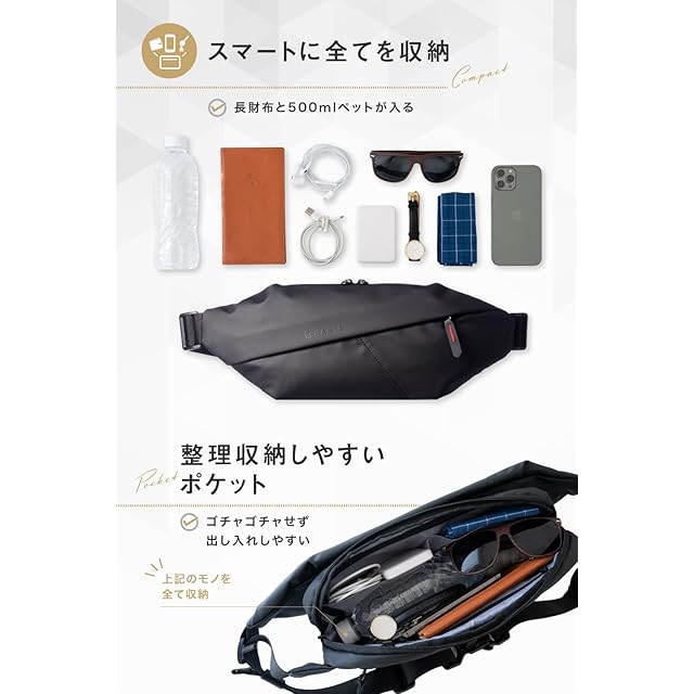 【公式】:"ヨーロッパデザイン×機能美を追求した" ボディバッグ SAFASS(セイファス)通常モデル:ちょっとしたお出かけから旅行、アウトドア、スポーツなどのシーンで、荷物を1つにまとめて身軽かつコンパクトな移動を実現できるボディバッグ。カジュアルからフォーマルまで合わせやすく、コーディネートの邪魔をしない使いやすい仕様に。「どのようなファッションにボディバッグを合わせたらいいか?」といったファッションコーディネートのお悩み解決 電子コラムを付属。