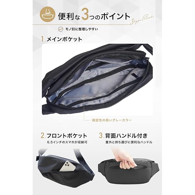 【公式】:"ヨーロッパデザイン×機能美を追求した" ボディバッグ SAFASS(セイファス)通常モデル:ちょっとしたお出かけから旅行、アウトドア、スポーツなどのシーンで、荷物を1つにまとめて身軽かつコンパクトな移動を実現できるボディバッグ。カジュアルからフォーマルまで合わせやすく、コーディネートの邪魔をしない使いやすい仕様に。「どのようなファッションにボディバッグを合わせたらいいか?」といったファッションコーディネートのお悩み解決 電子コラムを付属。