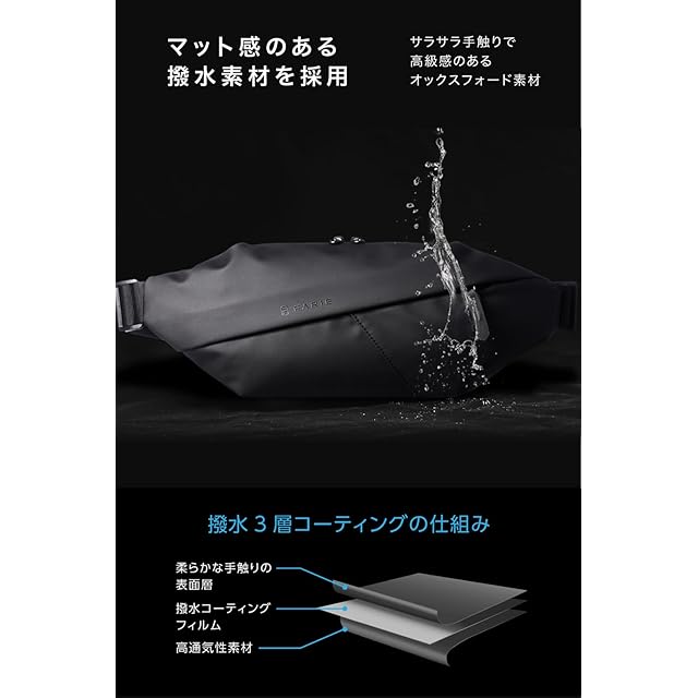 【他とは違うマット感のある撥水素材】:サラサラした手触りで身体への負担も少なく、突然の雨にも安心な撥水オックスフォード素材を採用。 ベルトはサイズ調整自由に可能、持ちやすい取手付き【Details】:サイズ:36cm×14cm×8cm、重さ:280g、ベルト長さ:60cm-最大100cm、素材=撥水オックスフォード、裏面は独自の蒸れにくい”エアースルーメッシュ素材”を使用。【安心の30日返金付き】:インターネット通販でのファッションアイテムのお買い物ですので、「いざ着用したらイメージと違わないだろうか..」「サイズや素材は実際に手をふれて確かめないので不安を感じる」というお声をよく頂戴いたします。そのような購入前のご不安を当店では少しでも解消して頂きたいという思いから、到着後30日以内でしたら、上記のような理由などでも、無条件で開封済みでも 返金・返品対応しております。