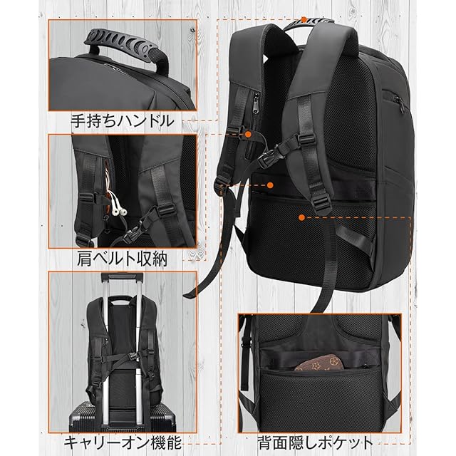 商品名:《新品未開封》[ABIBA] リュック メンズ ビジネリュックサック 弁当入れ スクエア 大容量 PC 通学 通勤 出張 USB充電ポート 黒 型崩れ防止 (ブラック412)