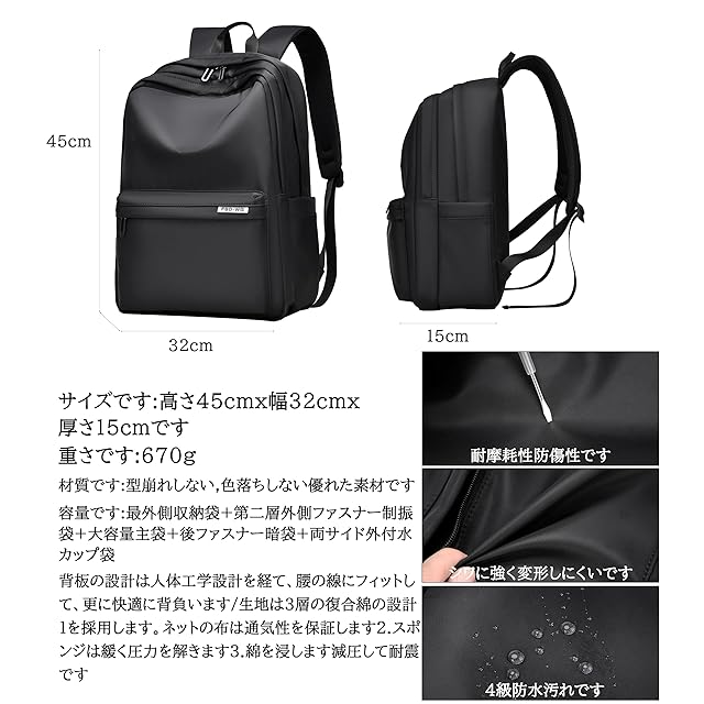 【高品質素材】高品質のポリエステルオックスフォード生地を採用し、優れた撥水性を持ち、急な雨や汚れからバッグの中身を守ります。耐摩耗性が高く、引き裂きに強く長持ちできます。